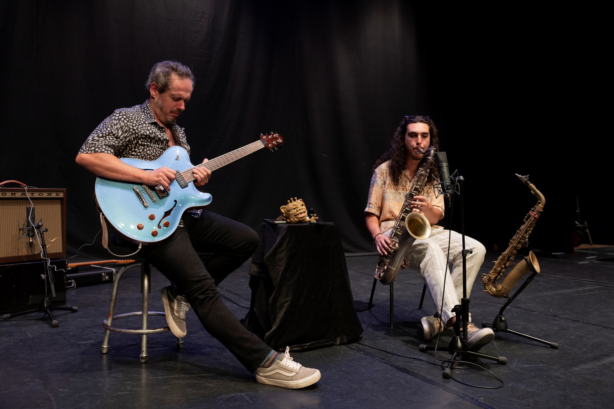 Afonso Pais e Tomás Marques são figuras marcantes da cena jazz, é essa a sua linguagem musical e território comum. Mas, neste projeto, Marques e Pais abdicam de “tocar jazz”. Não se servem de composições e não seguem as regras habituais do género. Marques e Pais optam por estabelecer um diálogo musical conciso, sem terem nada pré-estabelecido, um duo improvisado de saxofone alto e guitarra elétrica (ligação também pouco usual).