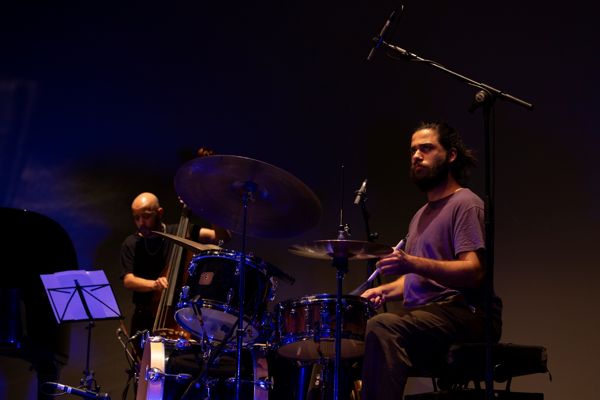 Francisco Nogueira | Compositor e contrabaixista, nascido em 1996 em Lisboa. Estudou seis anos de música clássica na Academia de Amadores de Música, e dois anos na Escola de Jazz Luiz Villas-Boas. Em 2015, ingressou em Conservatory van Amsterdam, na Holanda, onde obteve a licenciatura em Contrabaixo Jazz, terminada no ano de 2019. Durante este percurso estudou com mestres da música nacional e internacional, dos quais se destacam John Clayton, Petter Eldh, Ernst Glerum, Frans Van der Hoven, Fernando Flores, André Carvalho, André Santos, Luísa Marcelino, João Hasselberg, Nuno Costa e Nelson Cascais.