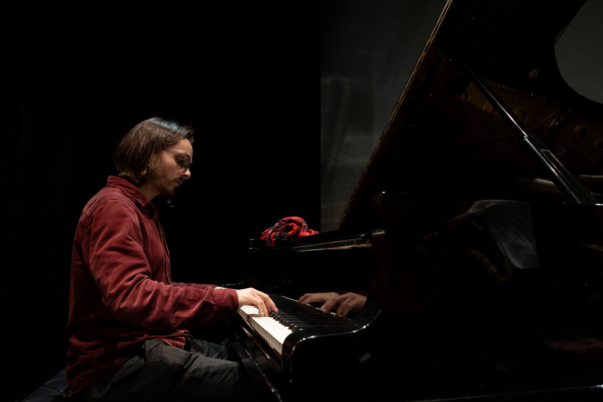 Vasco Pimentel | Pianista português nascido em 1994. Filho de Delfina Pimentel, professora de música, e de Paulo Lamas Pimentel, conceituado afinador e técnico de pianos a nível nacional. A música foi sempre uma constante na sua vida, quer em casa, quer em concertos, os quais começou a frequentar desde muito cedo. Na sua família faz parte da quarta geração de músicos de renome no panorama nacional. Aos quatro anos de idade começou a aprender piano com Lilia Rakova. Aos dez anos ingressou no Instituto Gregoriano de Lisboa, onde completou o 8º grau de piano clássico, com Martin Gerhardt. Paralelamente ao ensino do piano clássico, estudou percussão na Escola da Orquestra Metropolitana de Lisboa e bateria na Escola de Jazz Luiz Villas-Boas. Aos 14 anos manifestou o seu interesse pelo jazz e teve como professores Paula Sousa, Dan Hewson e Ana Araújo. Completou o curso de piano na Escola de Jazz Luiz Villas-Boas com Óscar Graça, terminado em 2013. No mesmo ano, ingressa na Escola Superior de Música, na licenciatura em piano jazz, de 2013 a 2016. Em 2019 completa o Mestrado em Música, também na Escola Superior de Música de Lisboa, com o pianista João Paulo Esteves da Silva, seu professor durante cinco anos. Participou em vários workshops de jazz em Portugal e em Espanha onde teve oportunidade de ter aulas com Aaron Goldberg, Jorge Rossy, Jeff Ballard, Michael Kanan, Ben Street, entre outros.