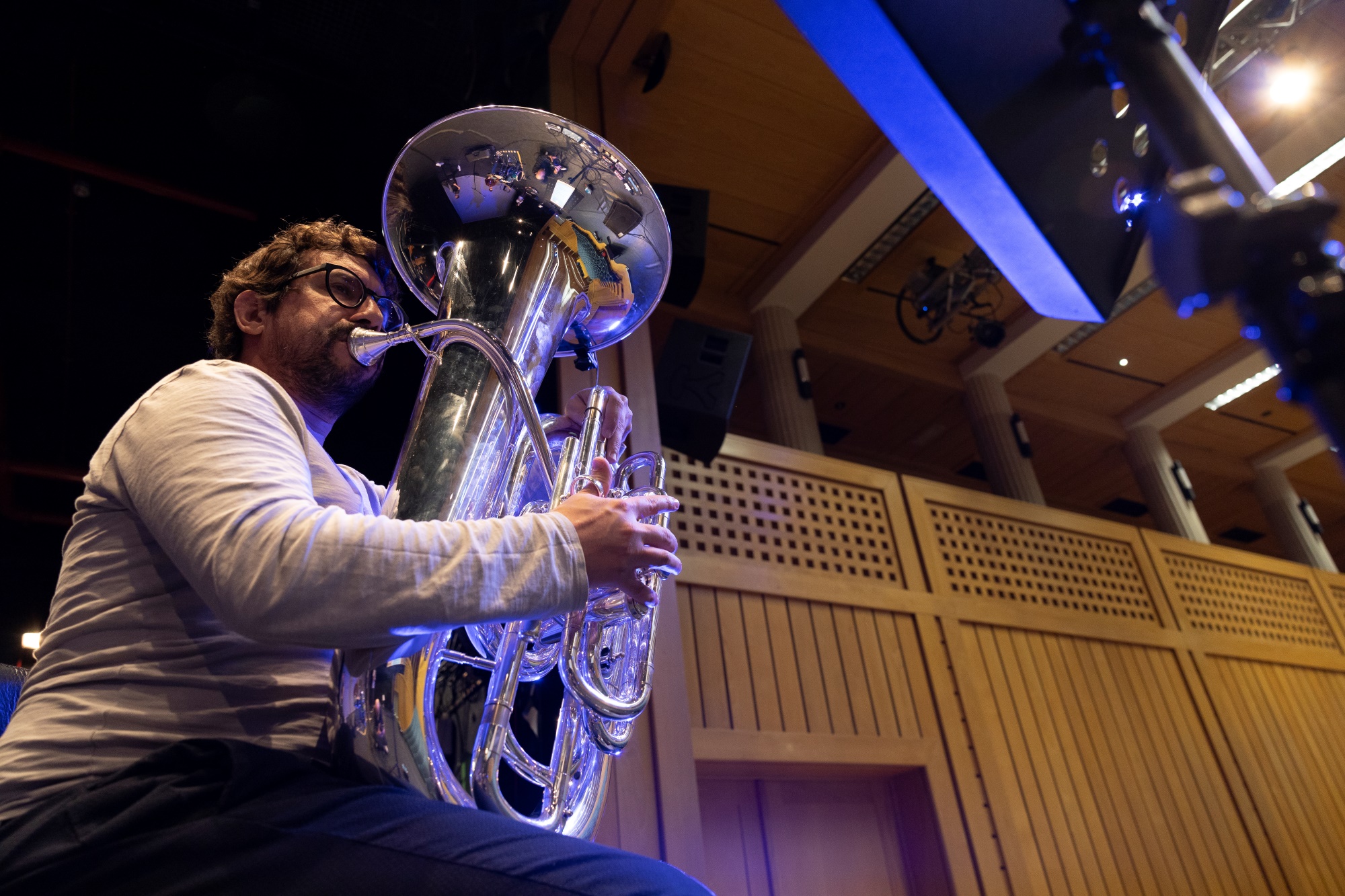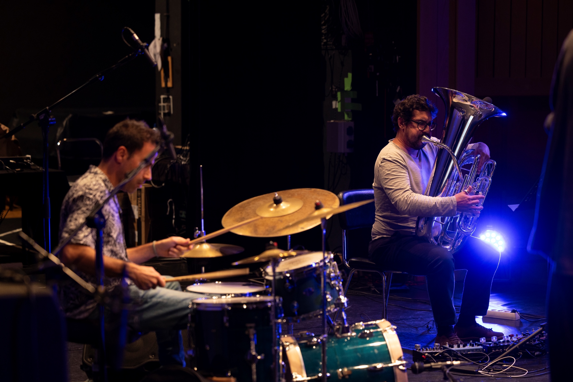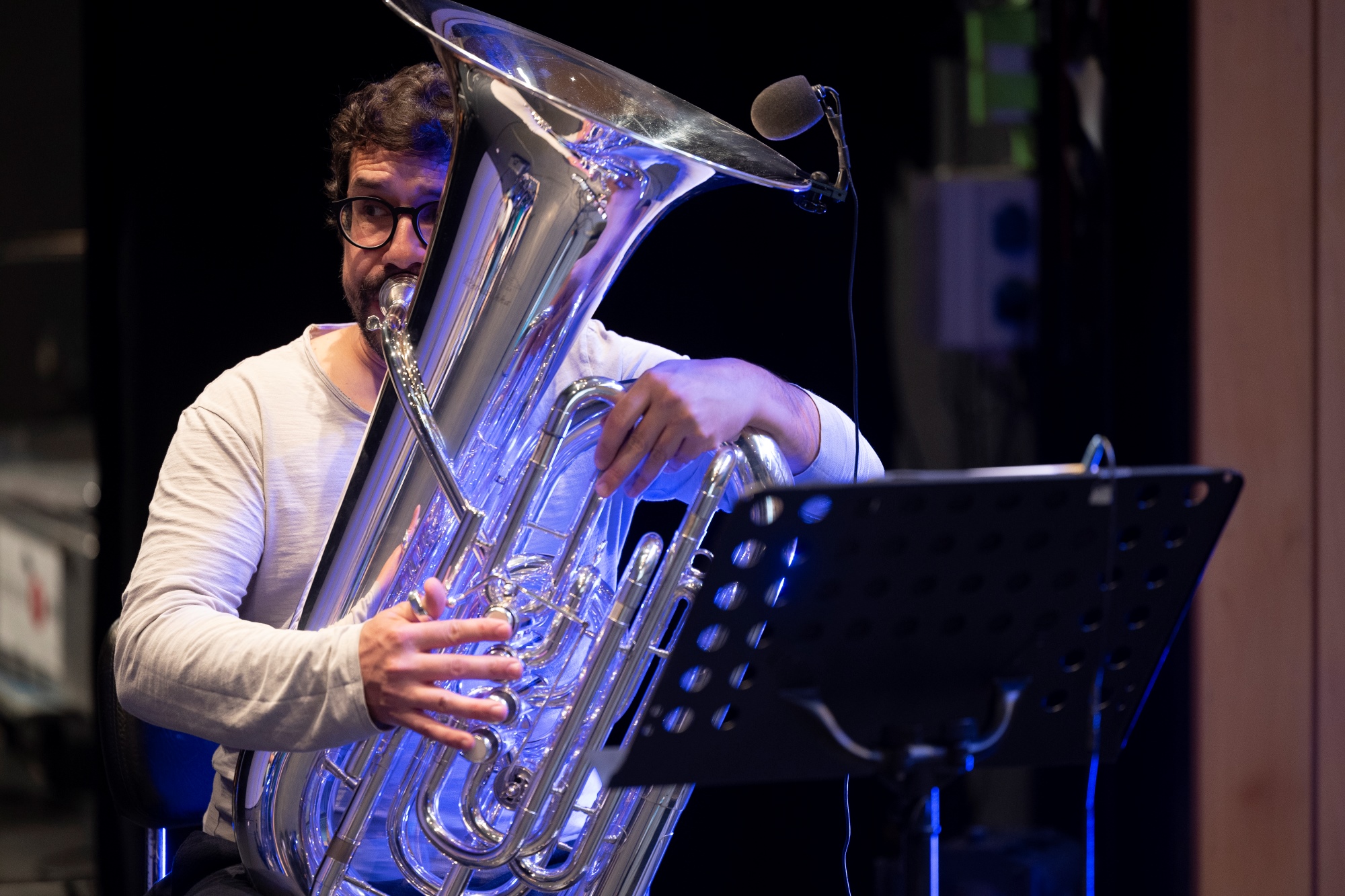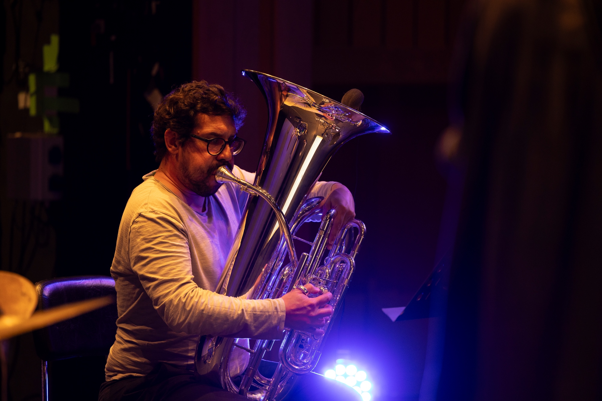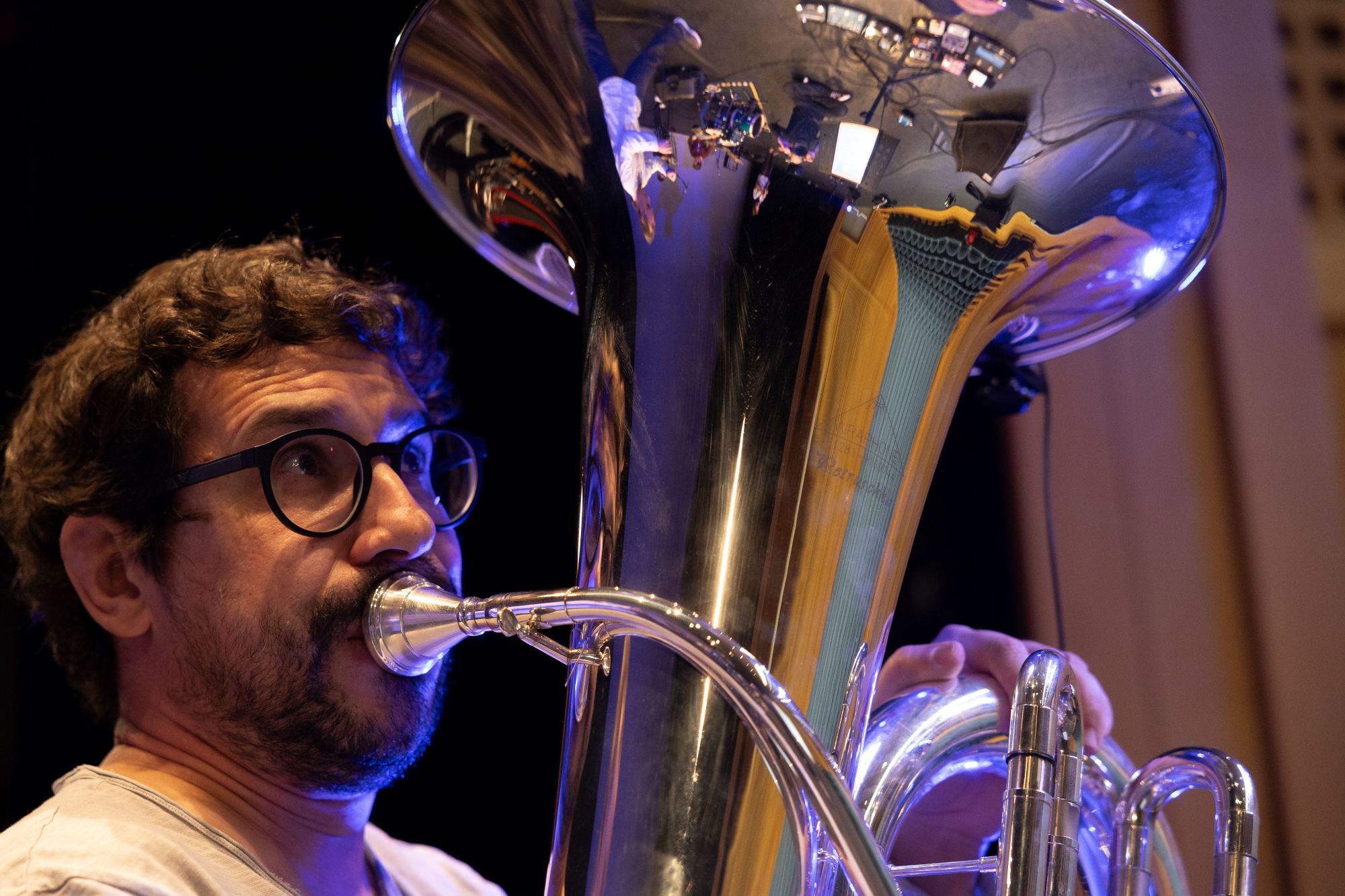 Gil Gonçalves | Artista Miraphone e professor de tuba na Universidade de Évora, integra diversas bandas como Kumpania Algazarra e Dixie Gang. Tem vindo a colaborar com várias orquestras nacionais bem como com artistas, nomeadamente Luísa Sobral, Agir, Pedro Moutinho, Rodrigo Leão e Orquestra Gulbenkian.