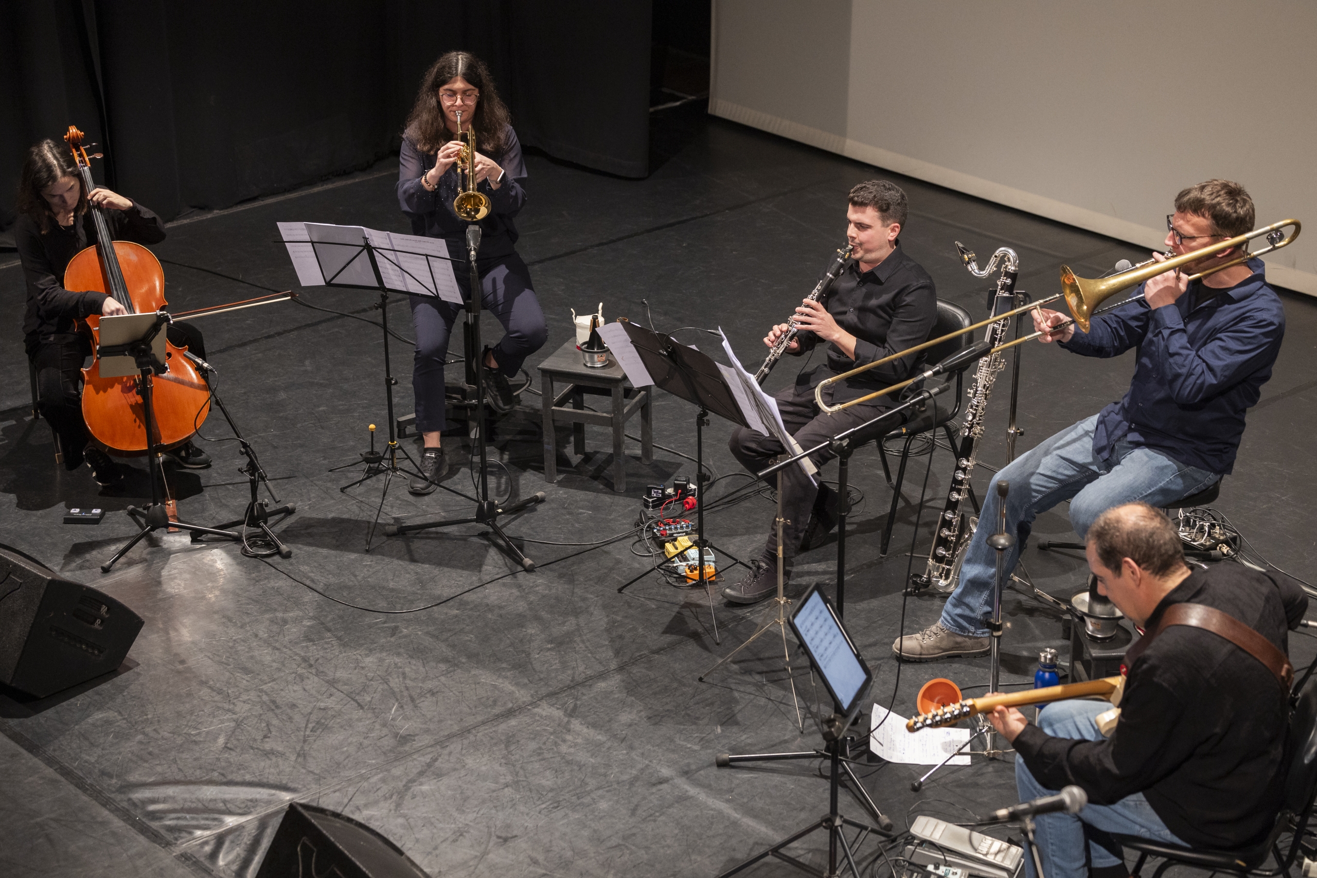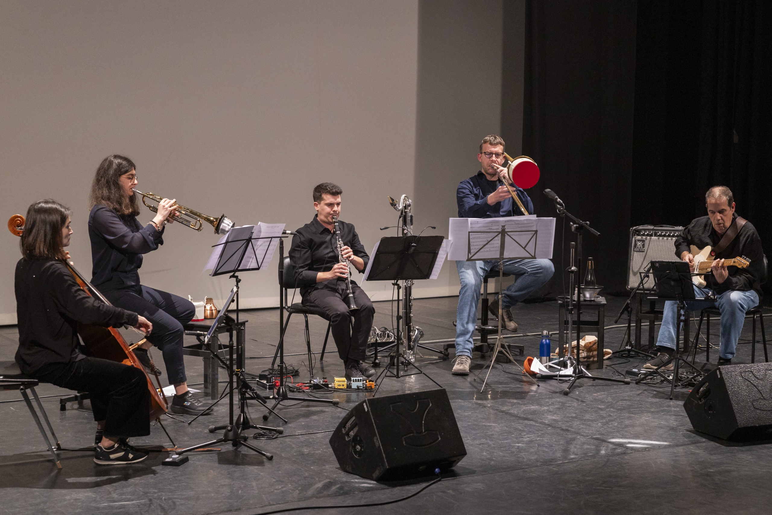 Paulo Bernardino | Faz parte da geração mais nova de músicos portugueses. Sendo um clarinetista versátil muito bem formado (Estudos nas Escola Superiores de Música de Lisboa e na Antuérpia) é colaborador tanto enquanto solista clássico, como em diversas formações de músicos de jazz da sua geração, entre eles o guitarrista André B. Silva no álbum MT. MERU (Clean Feed Records) e o baterista Diogo Alexandre, com o seu Bock Ensemblem (JACC Records).