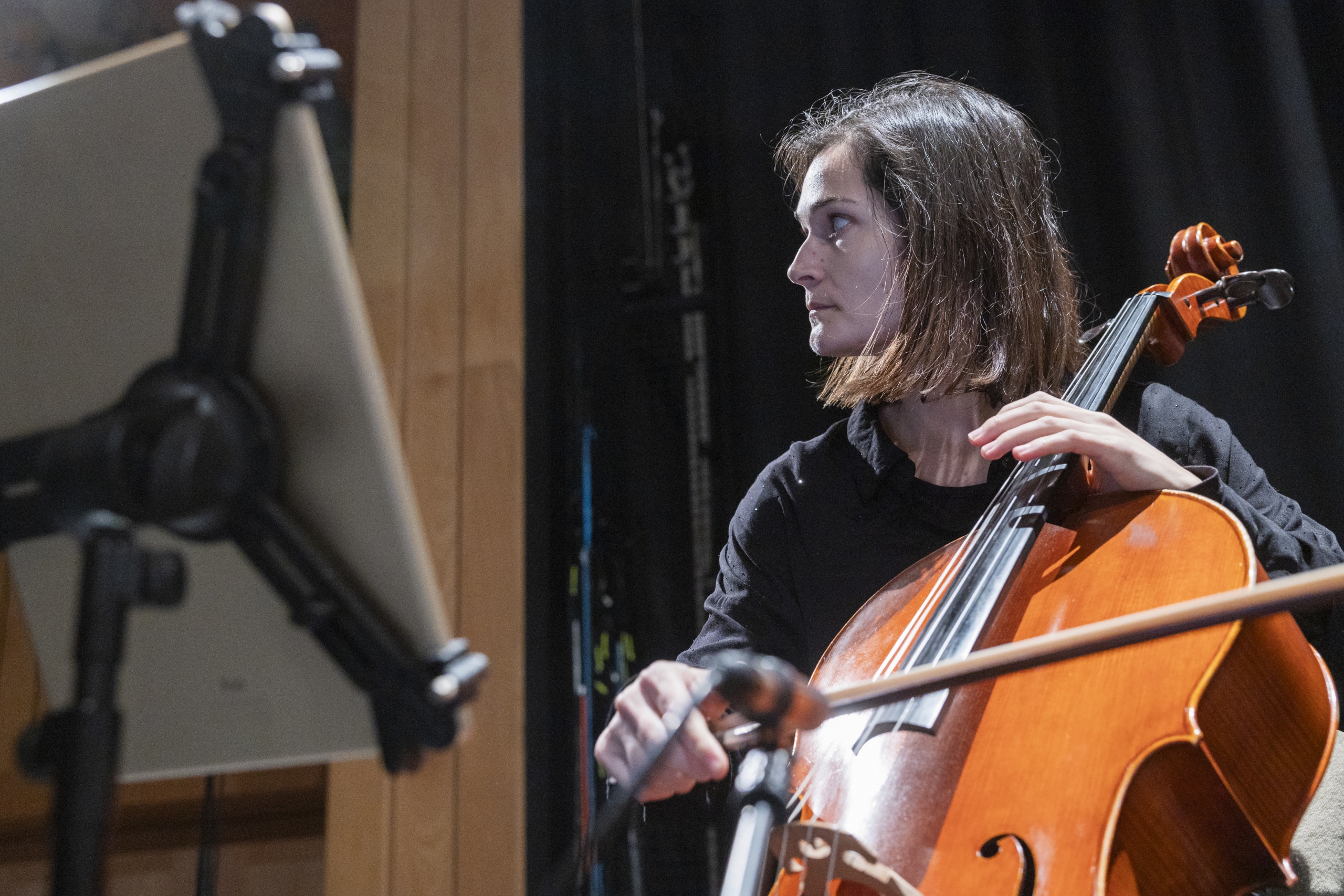 Sara Abreu | Uma jovem violoncelista portuguesa. Além de professora de instrumento (Escola de Música do Conservatório Nacional, Orquestra Geração, entre outras) a sua atividade freelancer abrange tanto os formatos mais comuns da música clássica (Orquestra de Municipal de Sintra, Orquestra Metropolitana de Lisboa, Orquestra de Câmara Portuguesa, entre outras), como também colaborações com artistas fora desta variante musical.