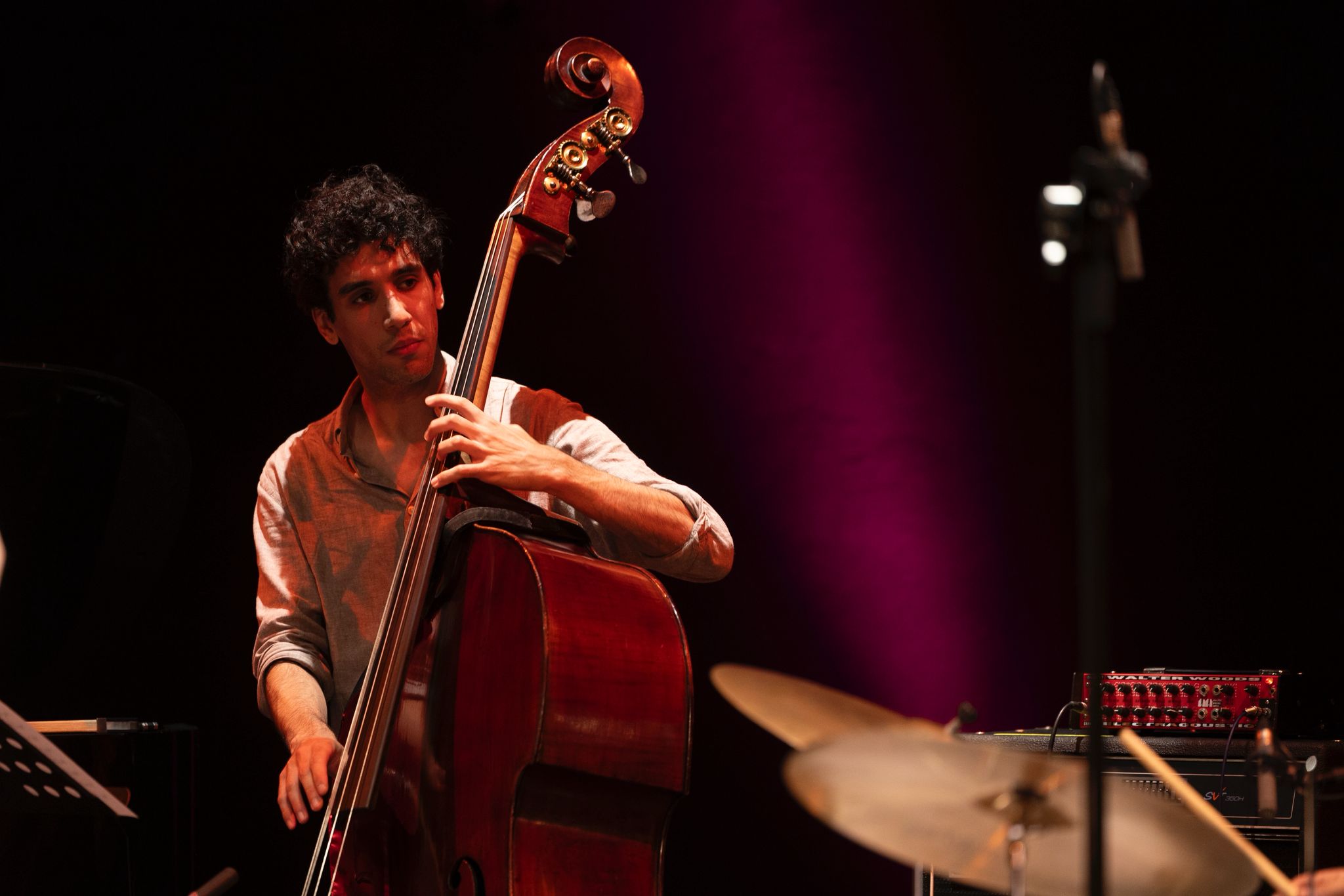 Gonçalo Naia | Contrabaixista natural de Aveiro. Iniciou o seu percurso musical em 2015 no Conservatório de música da Jobra onde teve a oportunidade de estudar com Demian Cabaud, Carl Minnemann, Marcos Cavaleiro, Pedro Neves, entre outros. Em 2018 ingressa na Escola Superior de Música de Lisboa na variante Jazz estudando com Bernardo Moreira, Nelson Cascais, Jeffery Davis, Afonso Pais, Bruno Pedroso, entre outros. Participou em Masterclasses com Jacob Sacks, Ethan Iverson, Mark Turner, Tony Malaby e Larry Grenadier, etc. Após terminar os seus estudos mantém aulas privadas com Alejandro Erlich Oliva e tem aulas ocasionalmente com Mané Fernandes, Jacob Sacks e Michael Formanek, Drew Gress e Brad Jones.