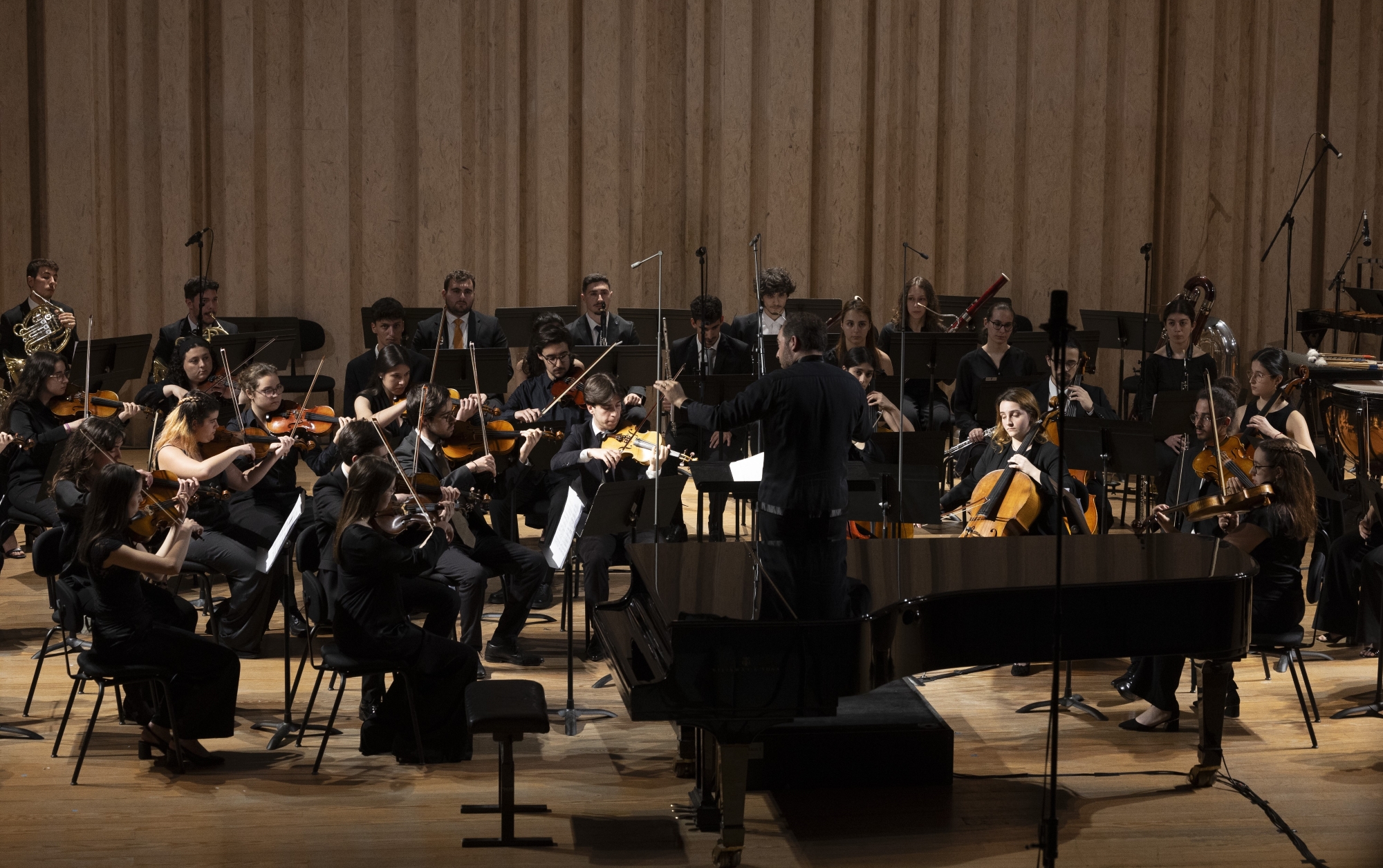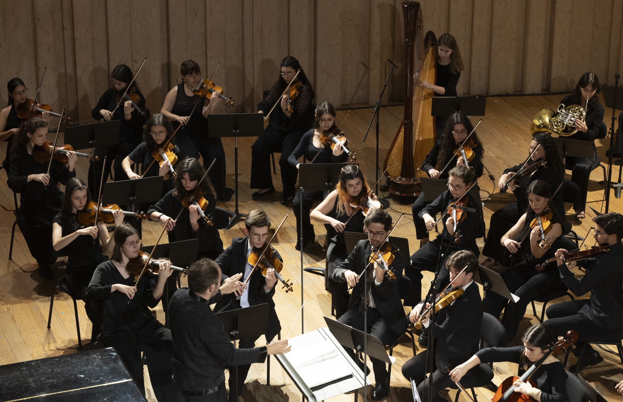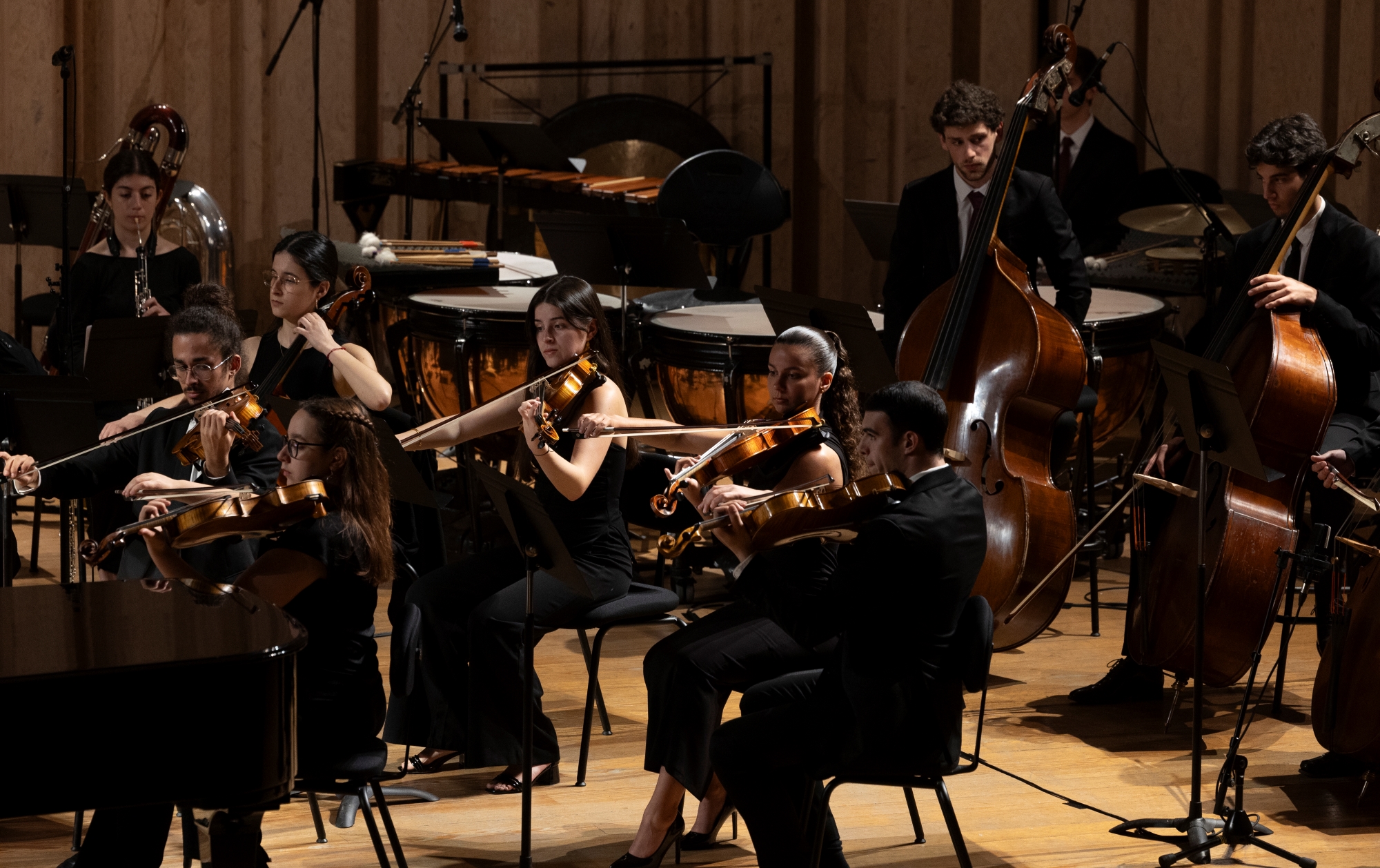 Orquestra Sinfónica da ESML | Agrupamento formado por alunos das áreas de Instrumento de Cordas, Madeiras, Metais, Harpa e Percussão que visa oferecer uma prática orquestral de excelência aos seus membros, proporcionando-lhes durante o seu ciclo letivo, o contacto com o mais variado tipo de reportório.