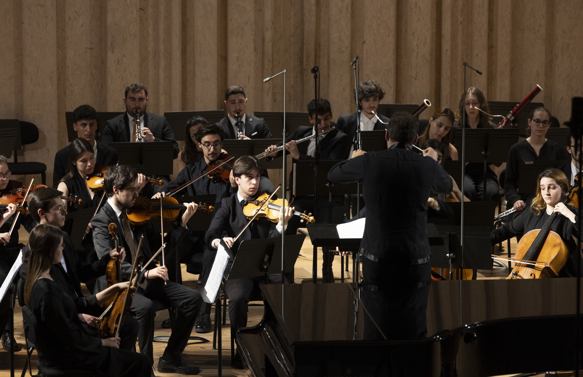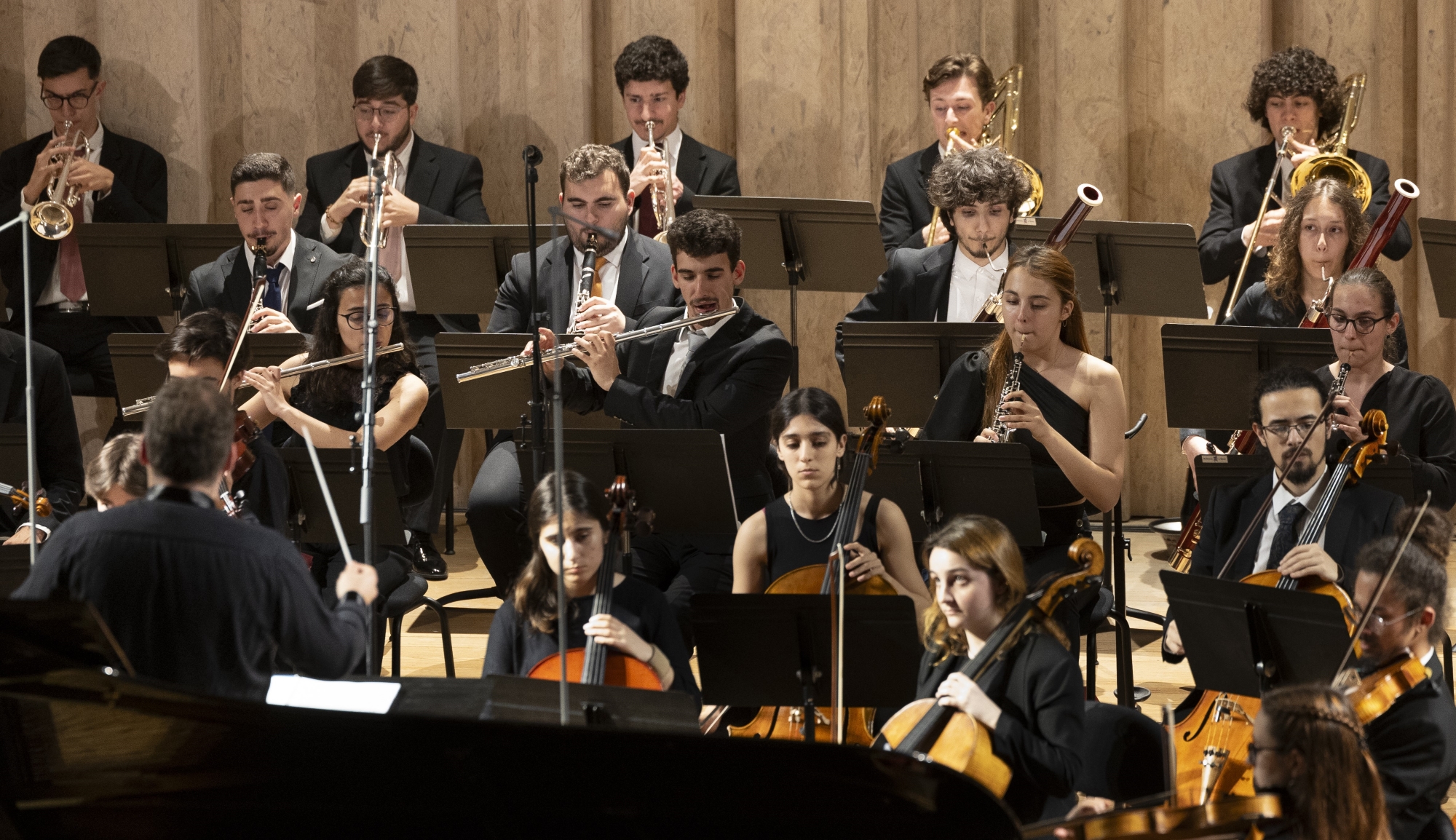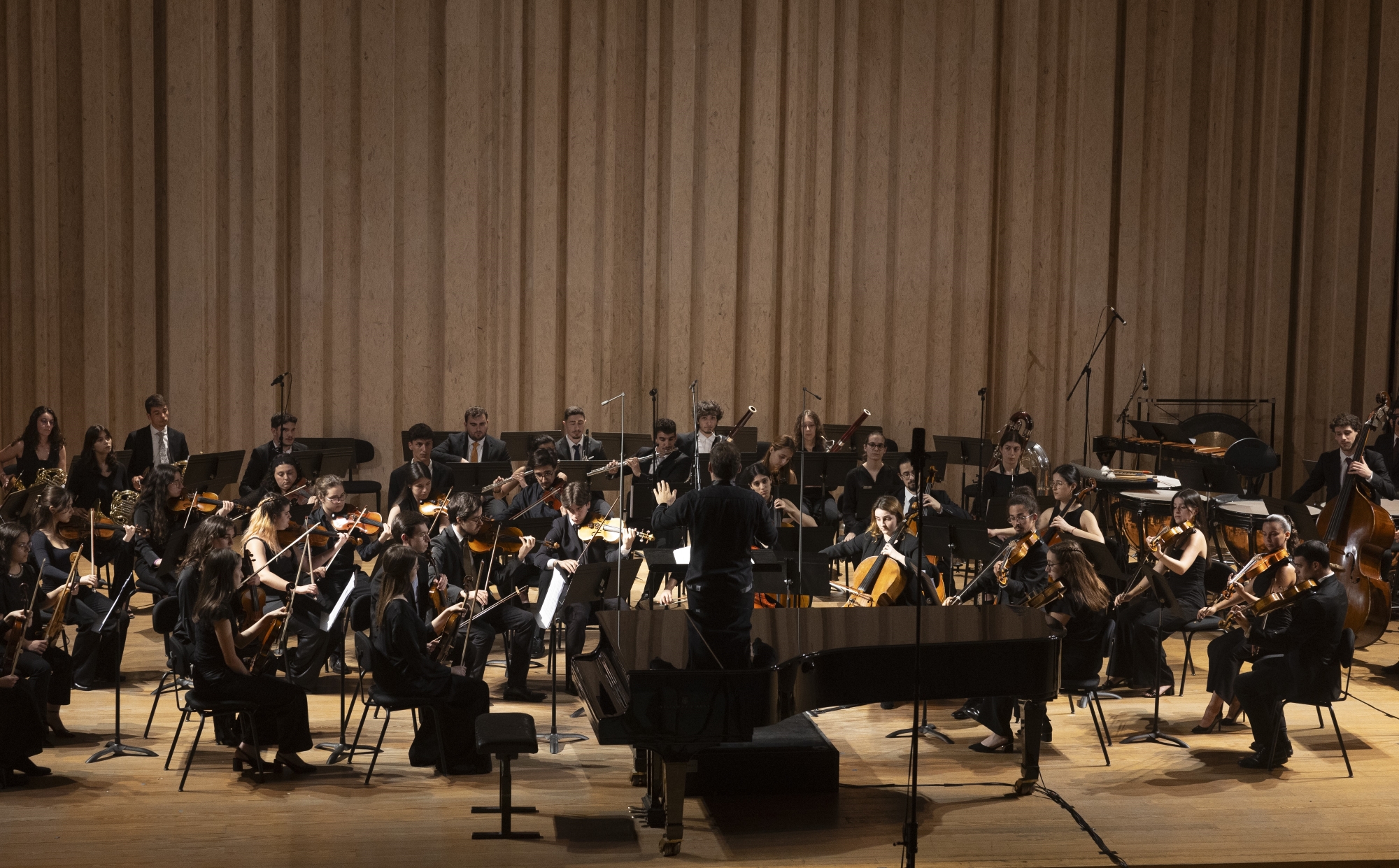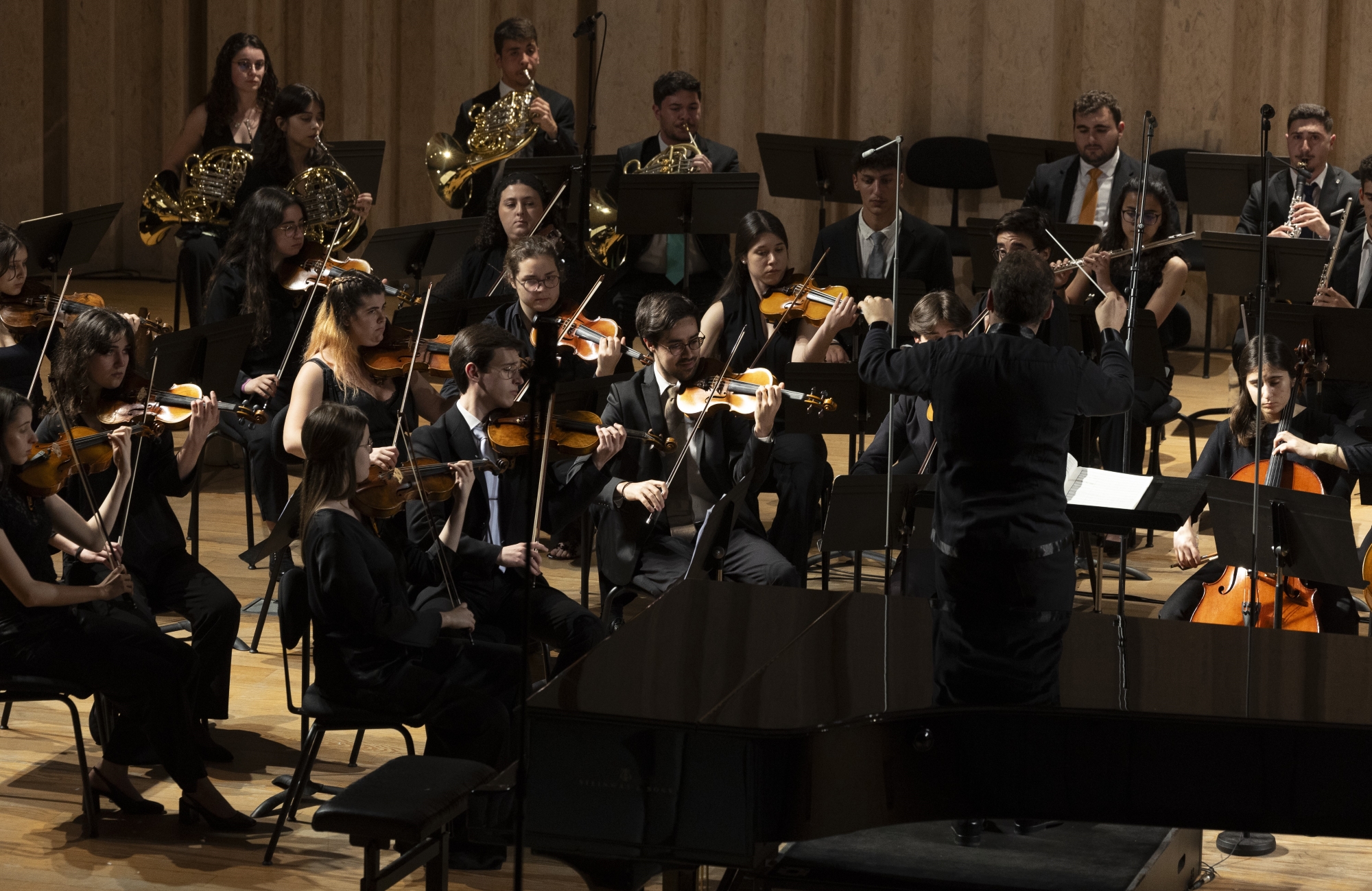 Orquestra Sinfónica da ESML | Agrupamento formado por alunos das áreas de Instrumento de Cordas, Madeiras, Metais, Harpa e Percussão que visa oferecer uma prática orquestral de excelência aos seus membros, proporcionando-lhes durante o seu ciclo letivo, o contacto com o mais variado tipo de reportório.