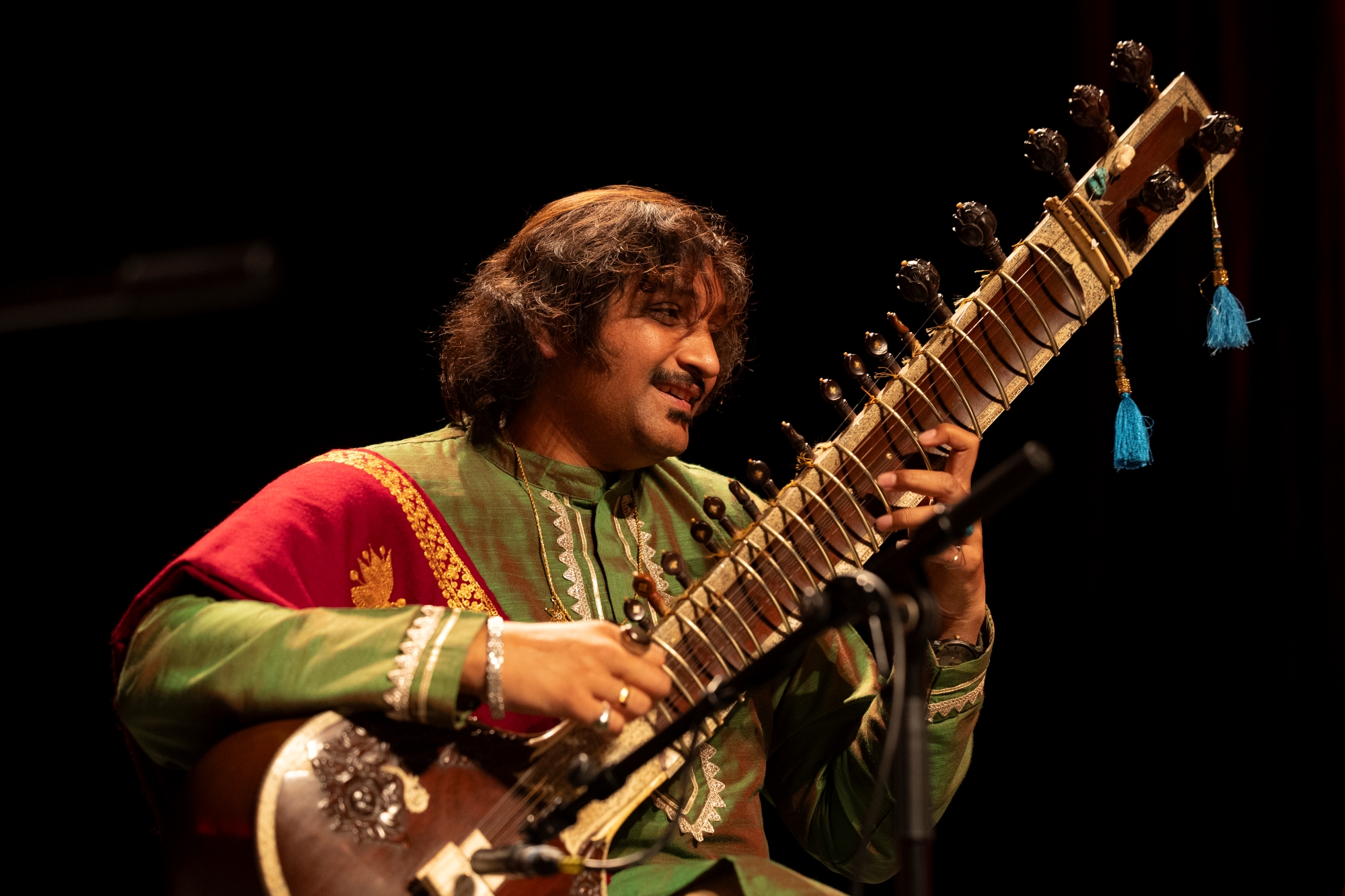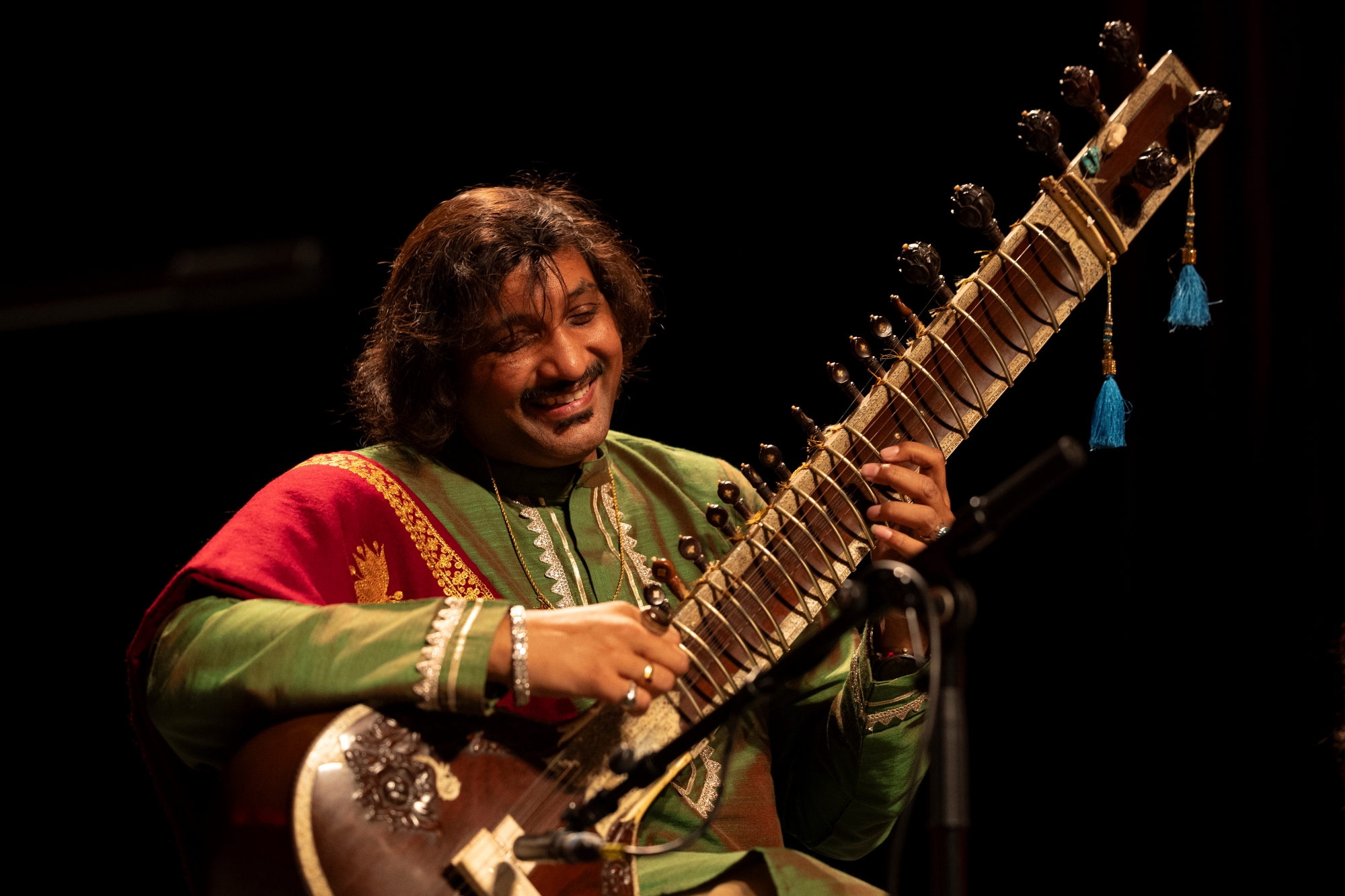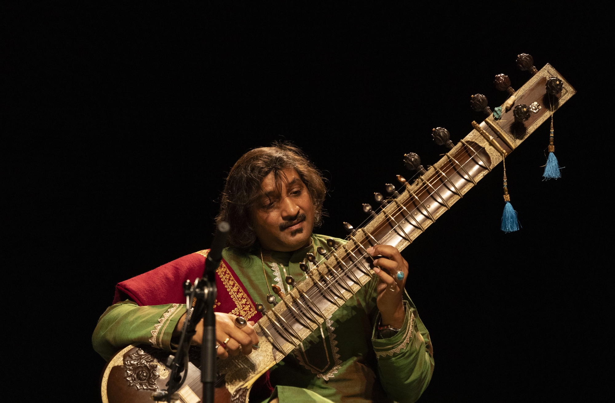 Sitar é um dos cordofones mais importantes e populares da Ásia Central na tradição da música clássica indiana. Os maestros de sitares, educadores, compositores e pesquisadores Pandit Abhishek Adhikary e Drª Murchana Adhikary Barthakur da Índia ganharam eminência e popularidade através da apresentação meditativa, virtuosística e graciosa da sua arte. A sua música incorpora a herança da música tradicional indiana. A compreensão e os diálogos entre os dois sitares criam um efeito agradável e estético nos ouvintes. O duo Sitar Jugalbandi iniciou a sua jornada musical juntos em 2009 e desde então receberam diversos prémios e títulos como Surashri, Surmani, Prémio Nirod Baran, Prémio Pandit Nikhil Banerjee, entre outros. Foram também reconhecidos como Académicos Nacionais do Governo da Índia.