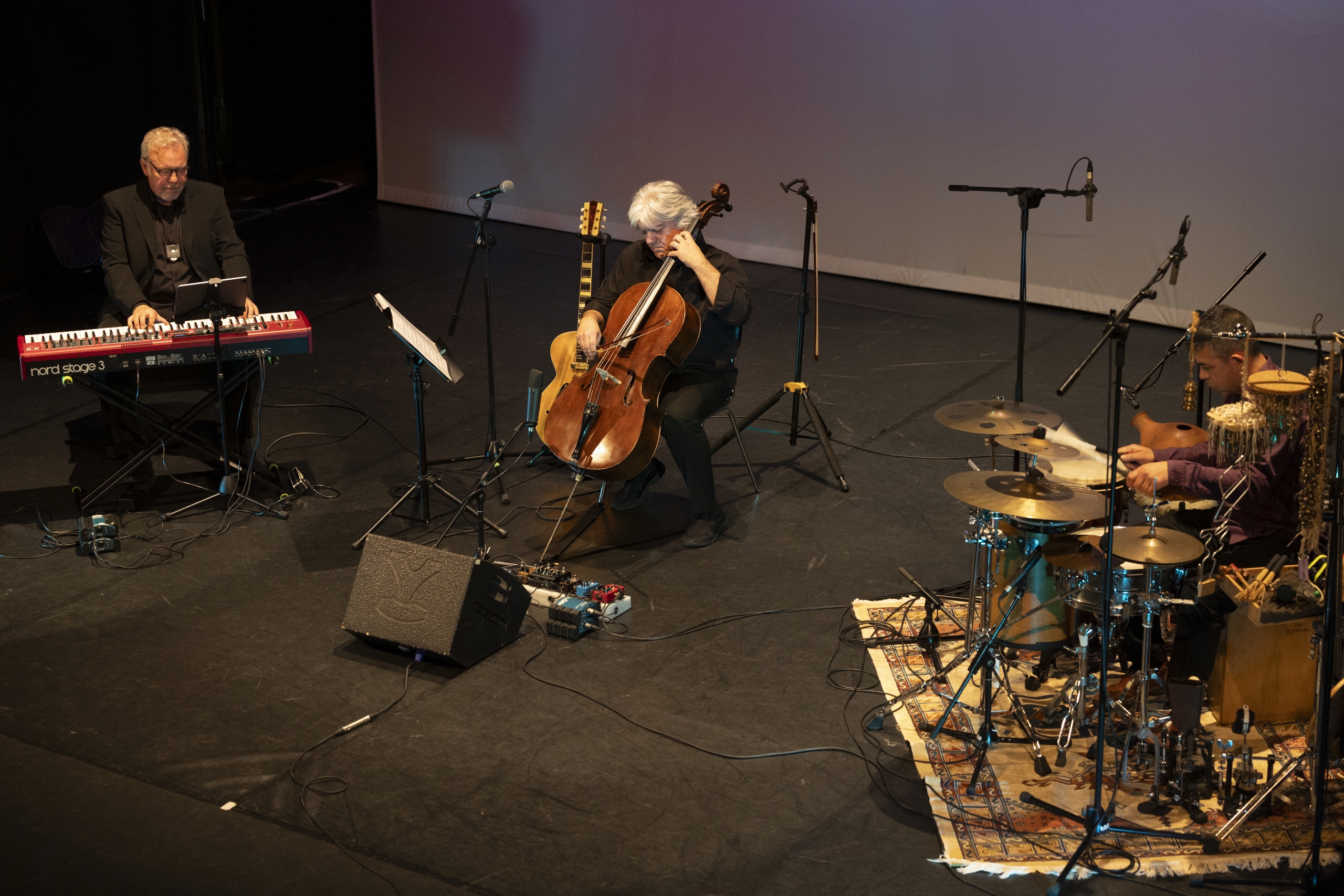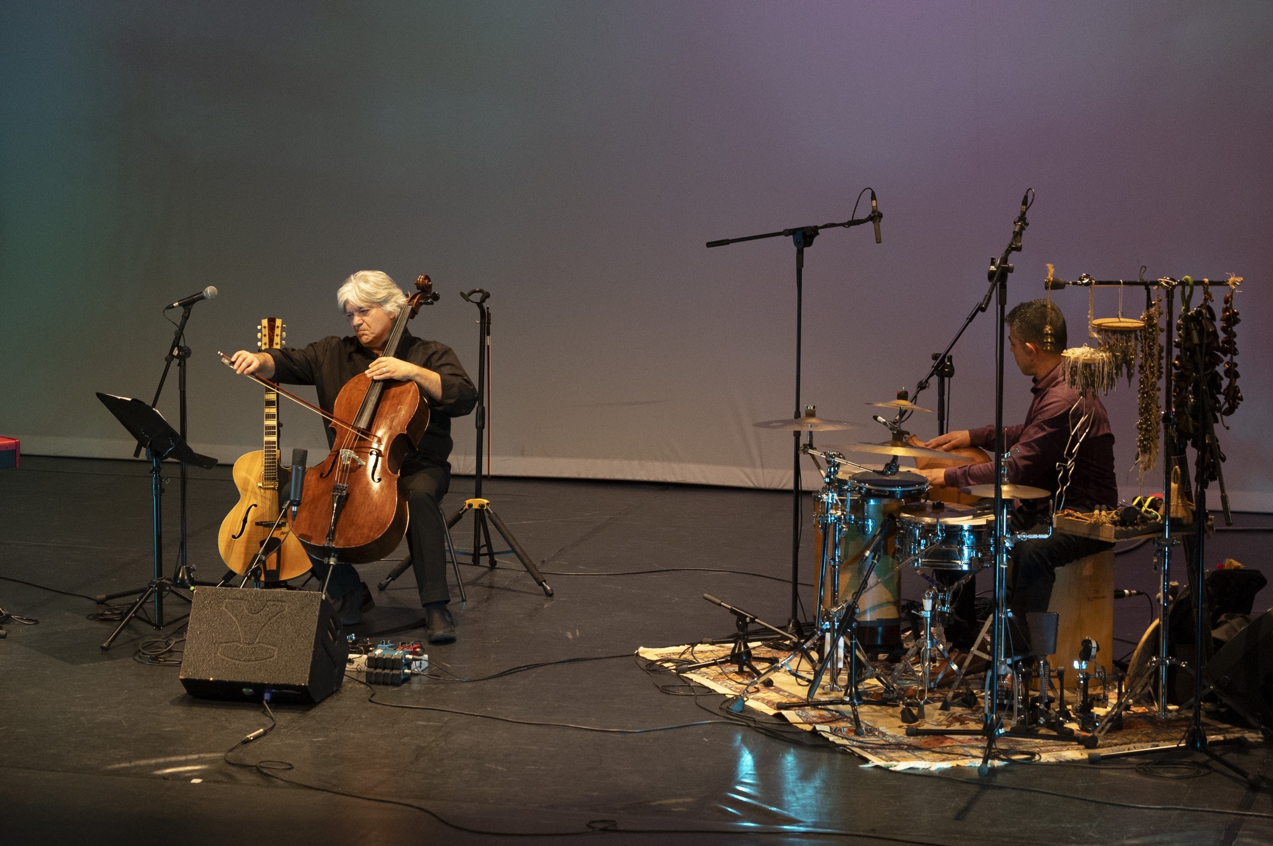 Davide Zaccaria | Violoncelista, guitarrista e compositor italiano residente em Portugal desde 2001. Colaborou com alguns dos mais conceituados cantores portugueses: Dulce Pontes, Paulo de Carvalho, Mariza, Jorge Fernando, Ana Moura. Realizou e editou projetos como: Por Terras do Zeca (Tributa a José Afonso com 4 CD editados), Terra d’Água – (Re)cantos da Alma (com Maria Anadon). Compôs várias bandas sonoras para teatro, como Medeia (Teatro Livre), O Triunfo Silencioso (Eurico Lopes e Beto Coville), Testamento de Maria (Luísa Ortigoso), O Filho da Rainha e a Mãe do Rei (Teatro Livre). Em 2023 realizou o Projeto Humanitário Crianças Pela Paz com 14 duetos entre grandes nomes da música portuguesa e crianças refugiadas e carenciadas.