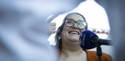 A escritora e jornalista bielorrussa, antes de entrar para a esgotadíssima tenda principal do Fólio, conversou com Luís Caetano para a Antena 2. Atualmente refugiada política em Berlim, a escritora fala sobre a sua vida, a sua ação política e resistente, e a sua obra.