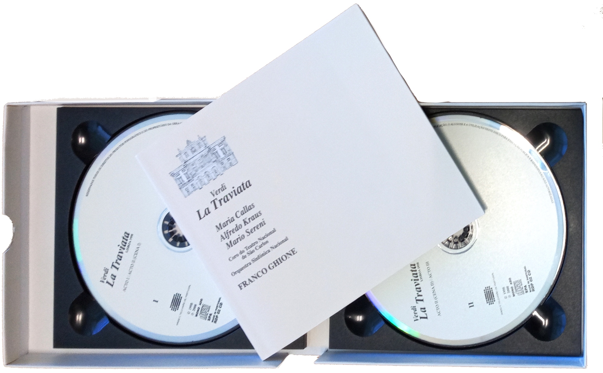 Esta edição de colecionador Verdi: La Traviata : Lisboa 1958 foi publicada em Março 2004, numa caixa de dois CD’s com livreto de 90 p., com texto de apresentação de João Pereira Bastos (diretor da Antena 2), o argumento e o libretto bilíngue de La Traviata (italiano e português) e inúmeras fotografias da estadia em Lisboa e récita de Maria Callas.
