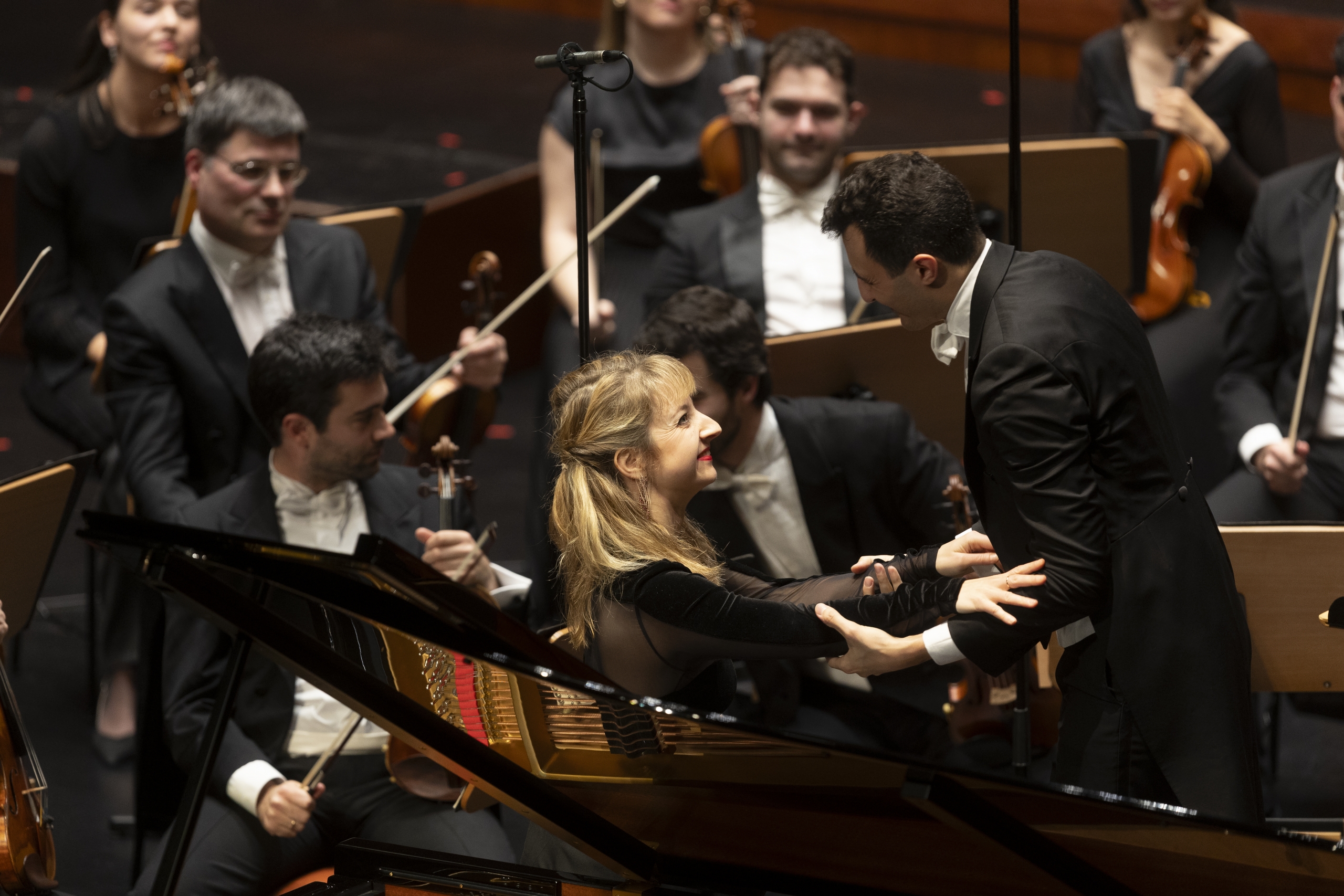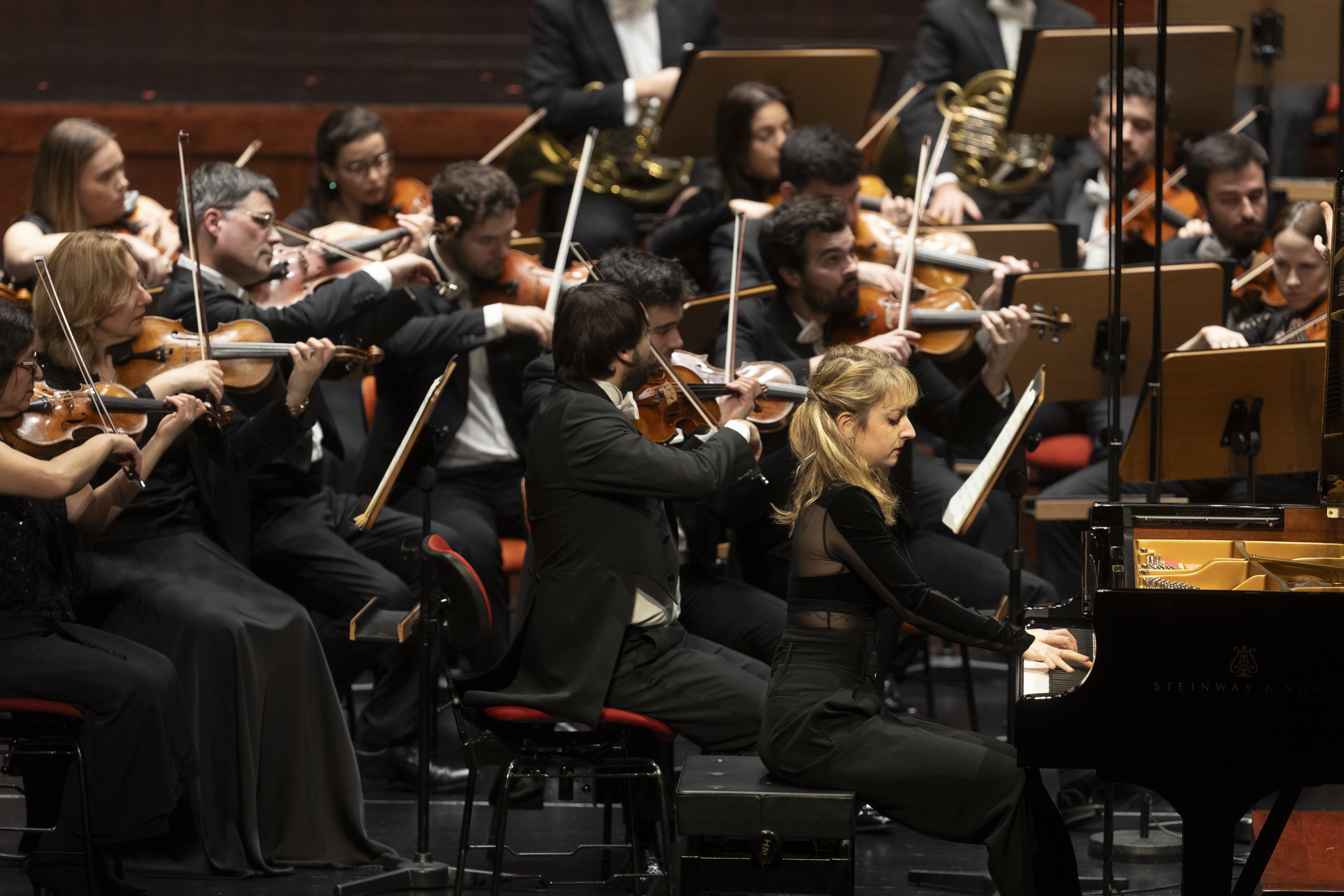 Lise de la Salle | Pianista reconhecida internacionalmente, com uma carreira de mais de vinte anos. Na temporada 2025/26, destacam-se as colaborações com orquestras como a Staatskapelle Berlin, sob a direção de Nathalie Stutzmann, a Sinfónica de Viena e Petr Popelka, a Sinfónica de Cincinnati e Kristiina Poska, a Sinfónica de Antuérpia e Eliahu Inbal, a Sinfónica da Rádio Polaca e Stephanie Childress, bem como a Sinfónica do Quebeque, a Filarmónica de Xangai, a Filarmónica Enescu e a Filarmónica de Colorado Springs.