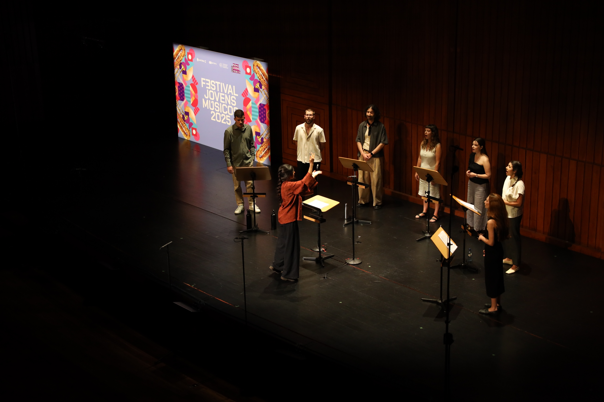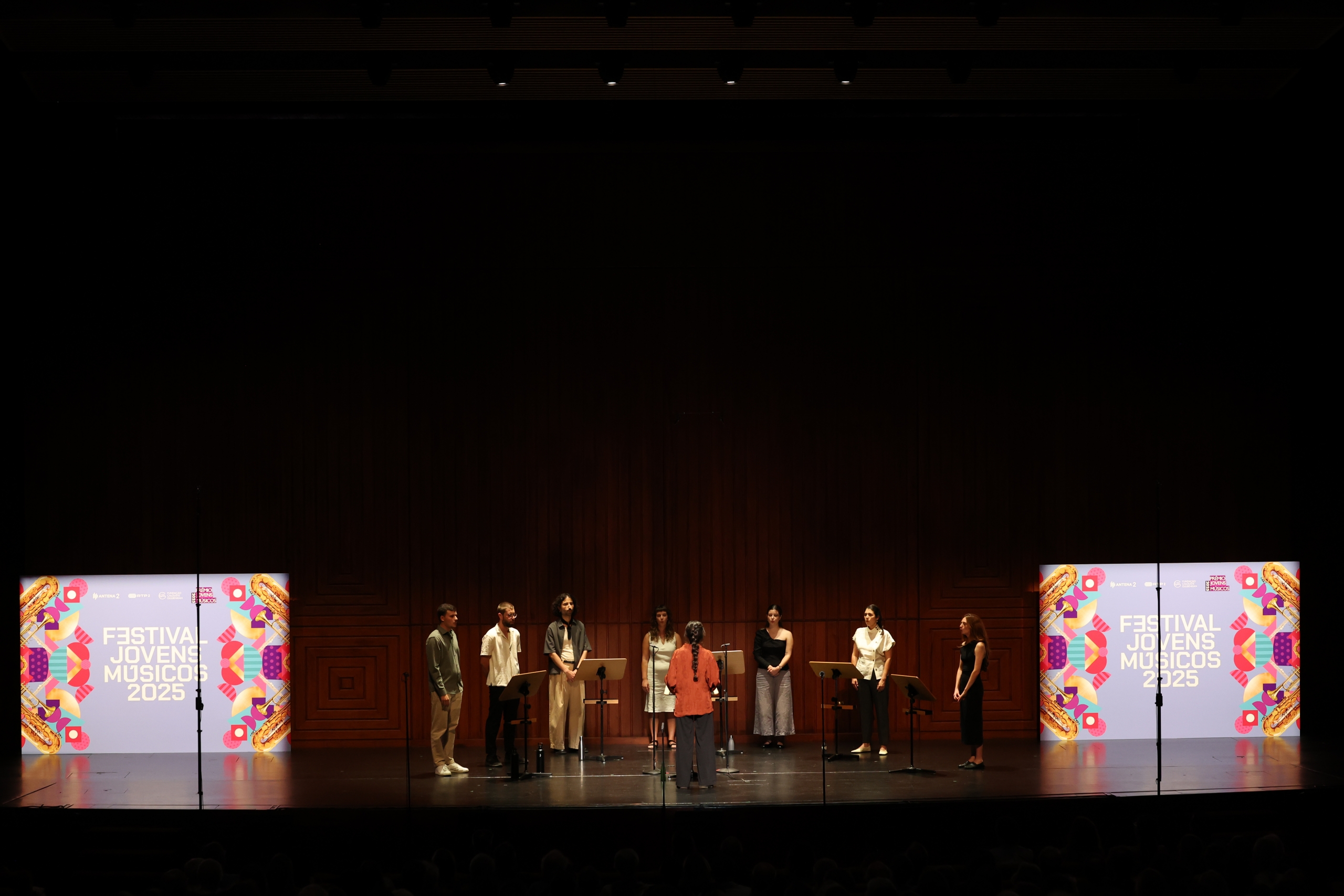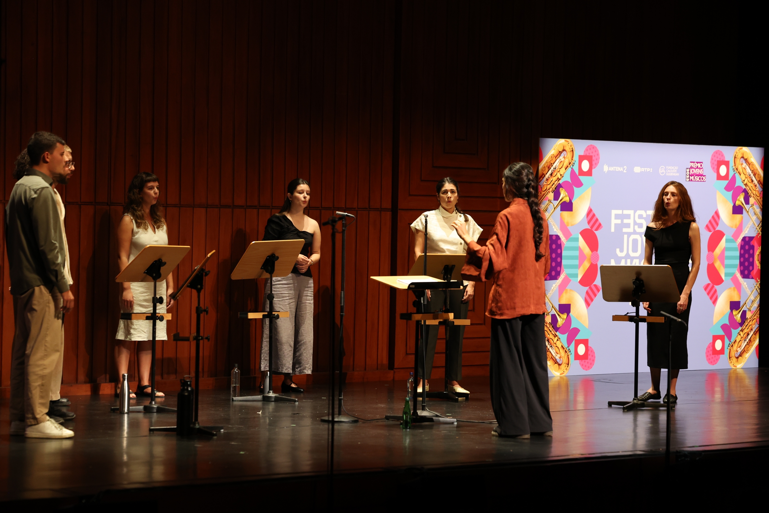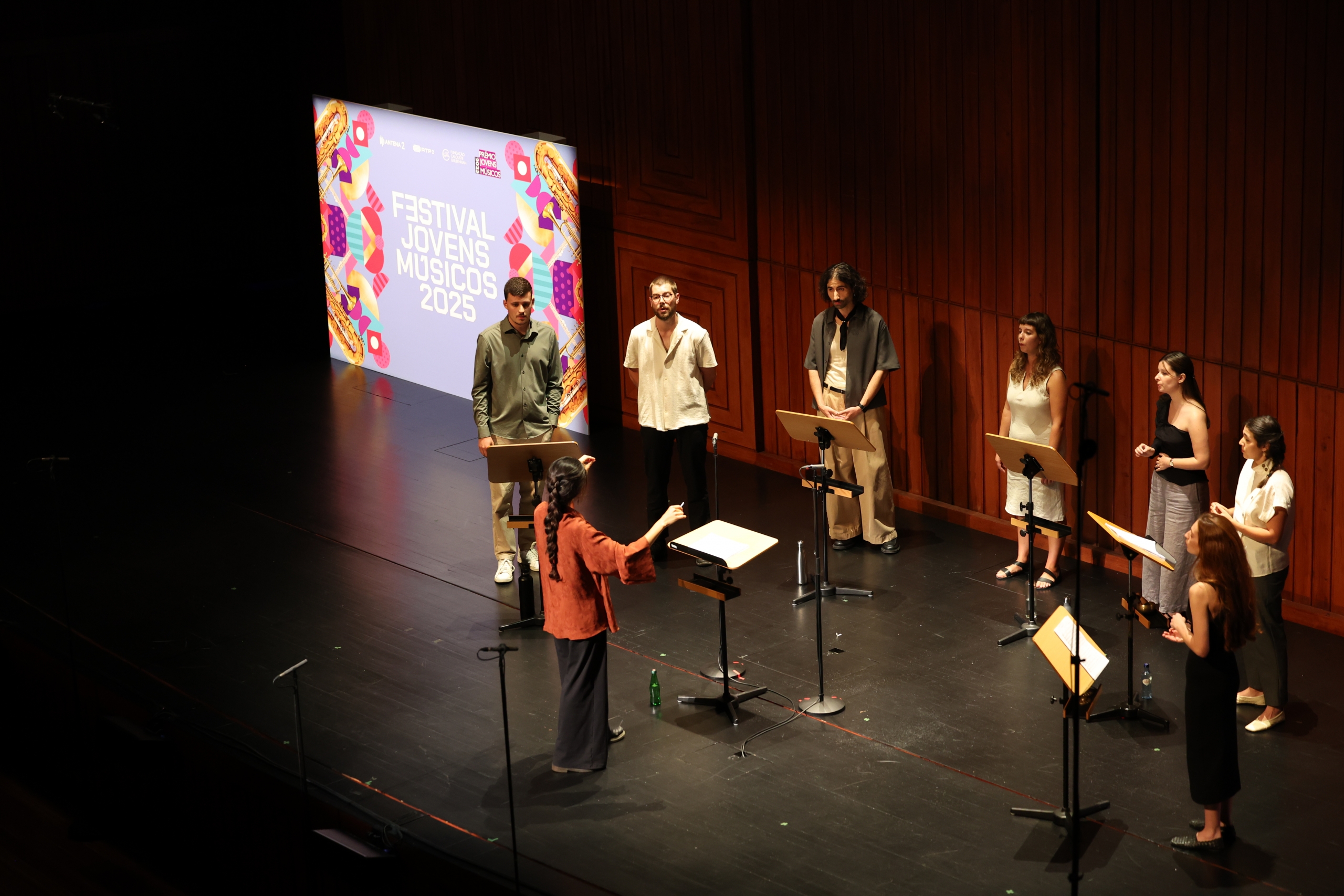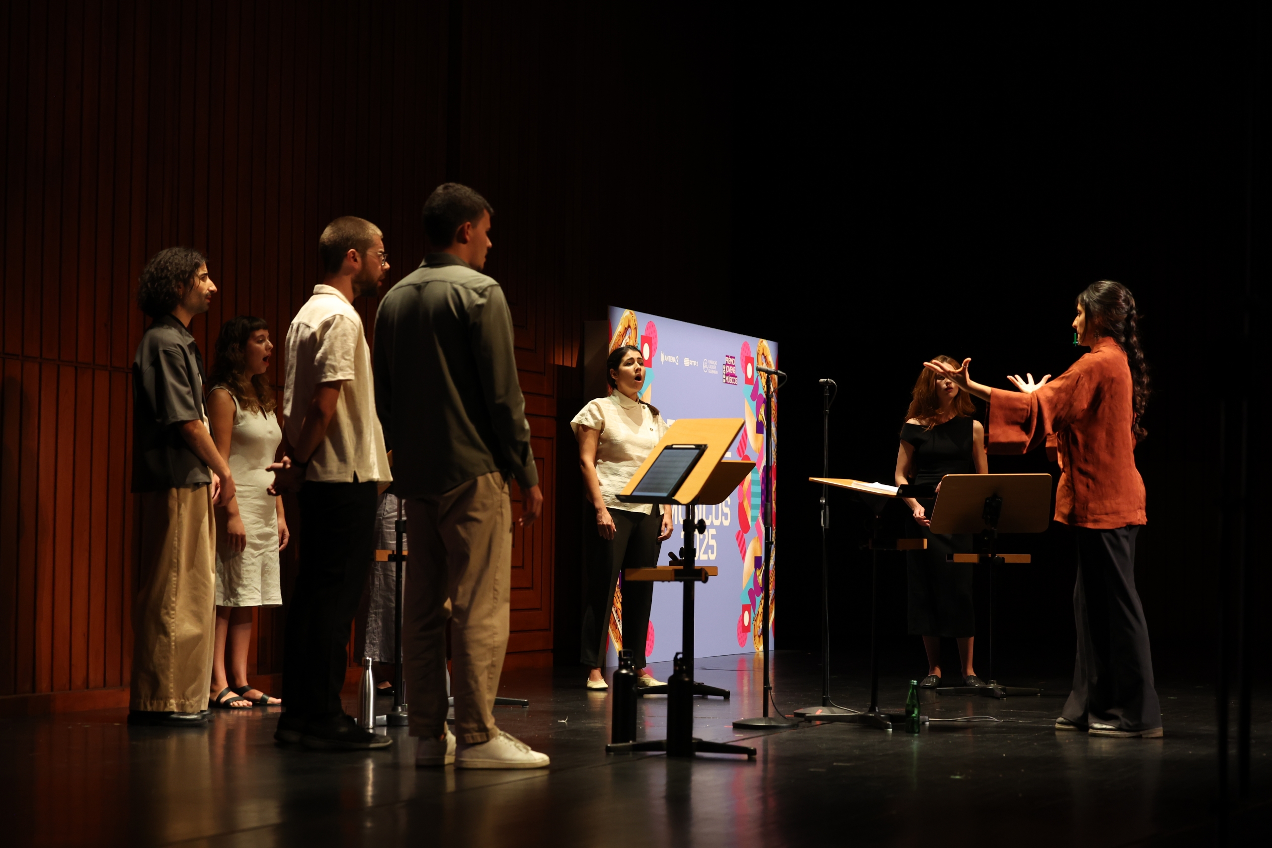 Na segunda parte do concerto ouvimos o grupo Leida, “um instrumento a oito vozes” como explica Mariana Dionísio, a responsável pela criação do projeto e pela composição das obras que foram hoje apresentadas em Lisboa. Criado em 2023, este grupo integra as vozes de Beatriz Nunes, Diogo Ferreira, Filipa Franco, Hugo Henriques, João Neves, Leonor Arnaut e Nazaré da Silva.