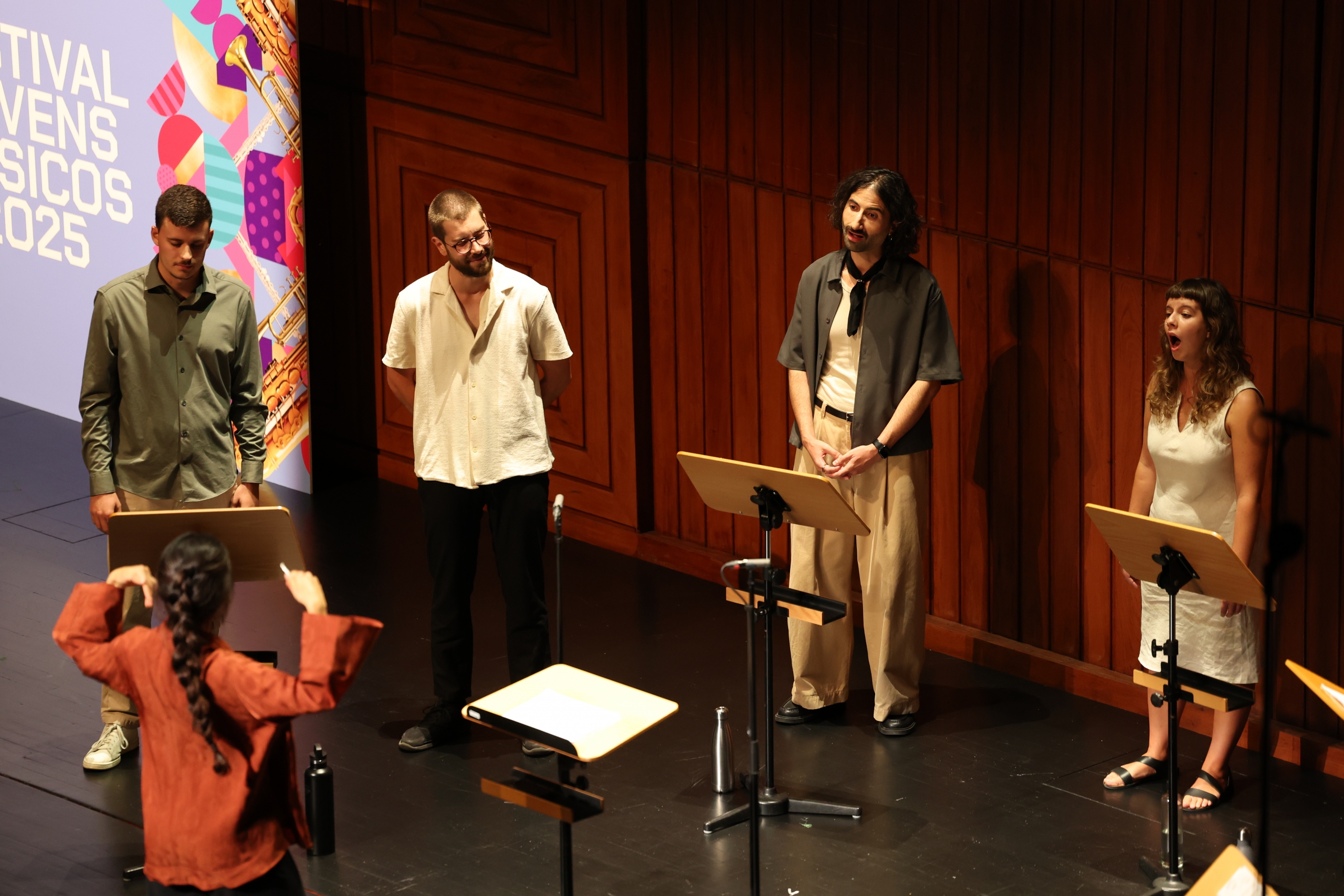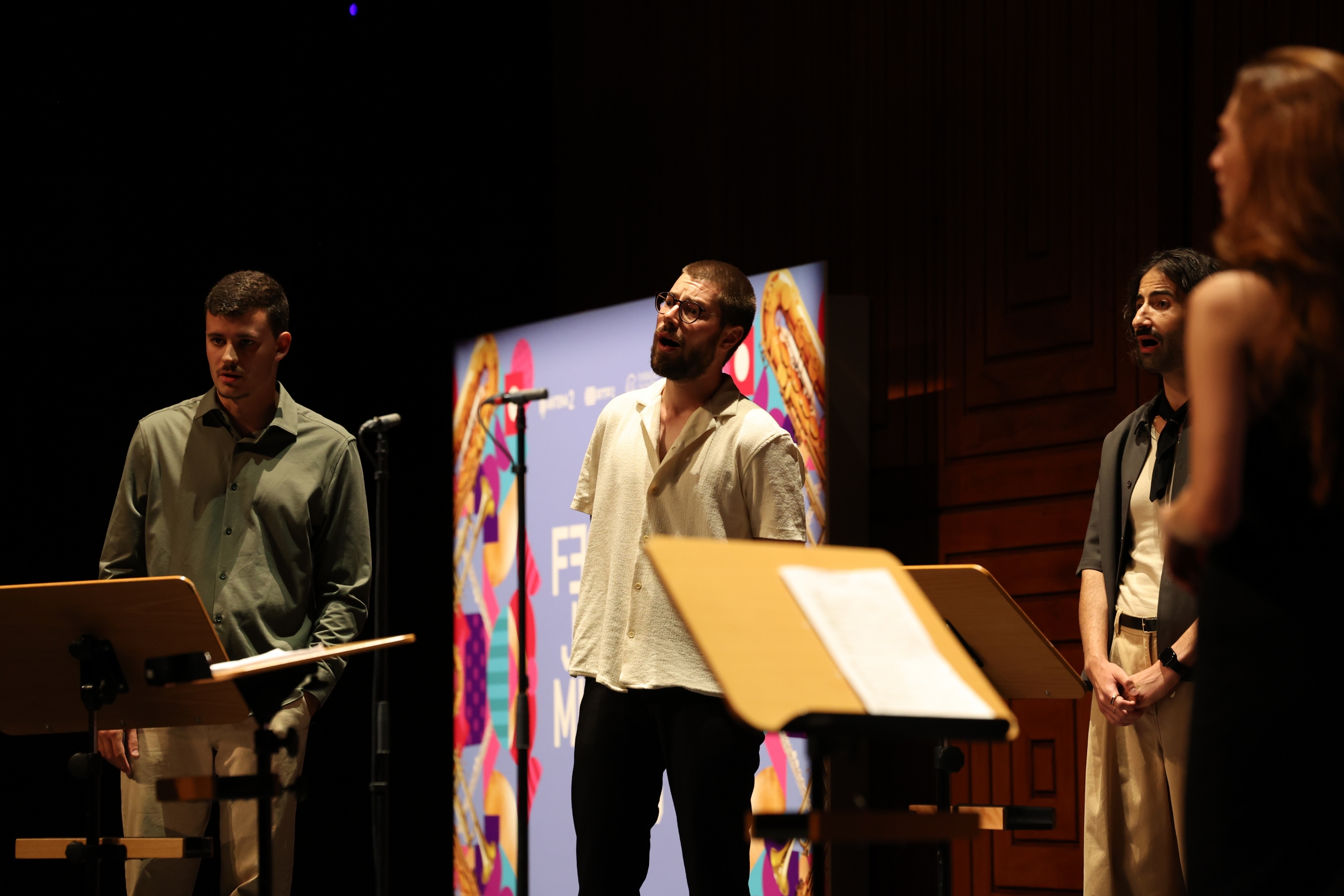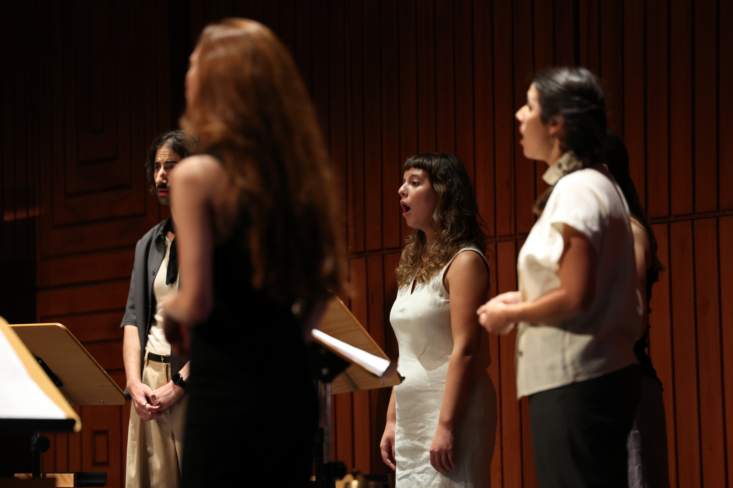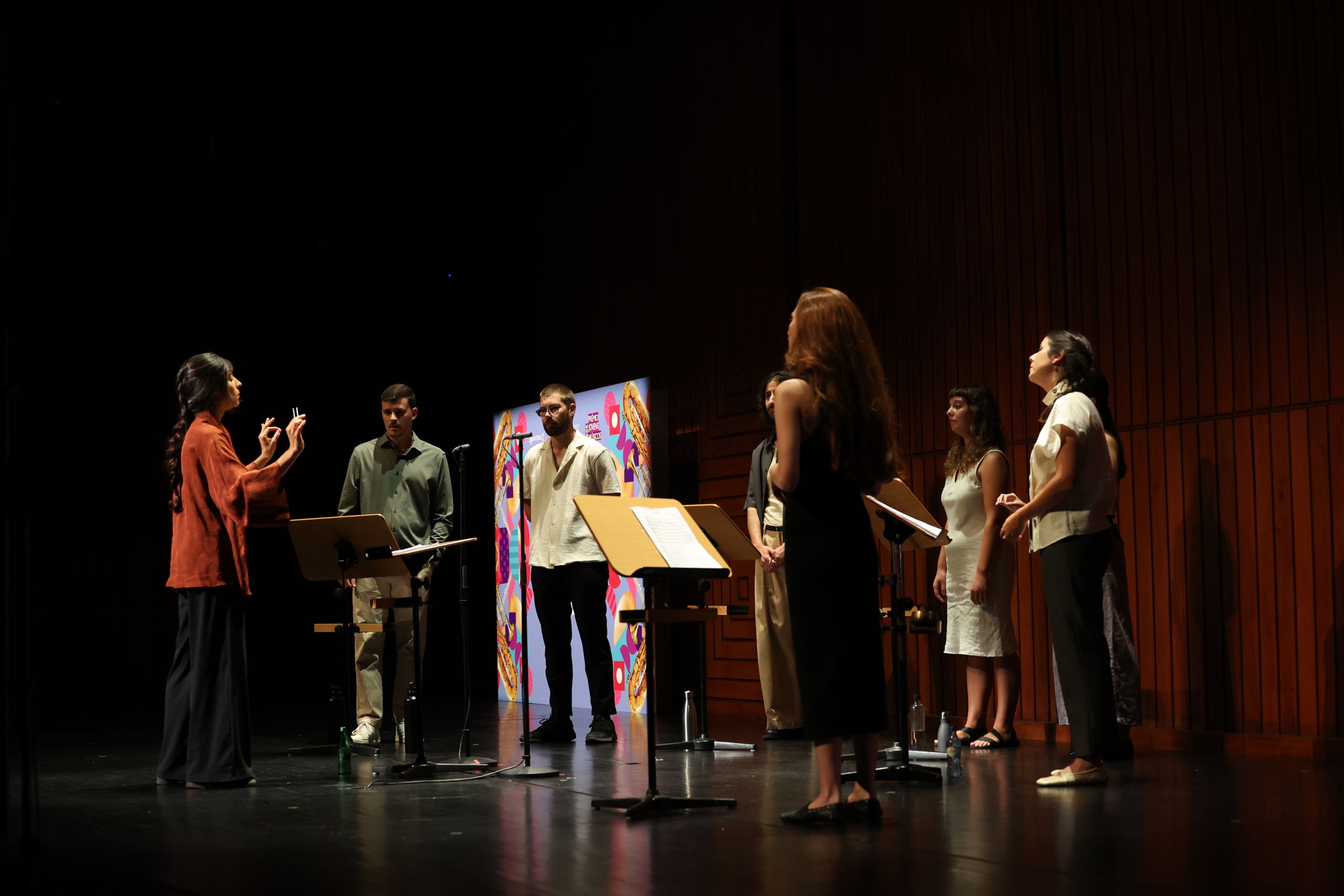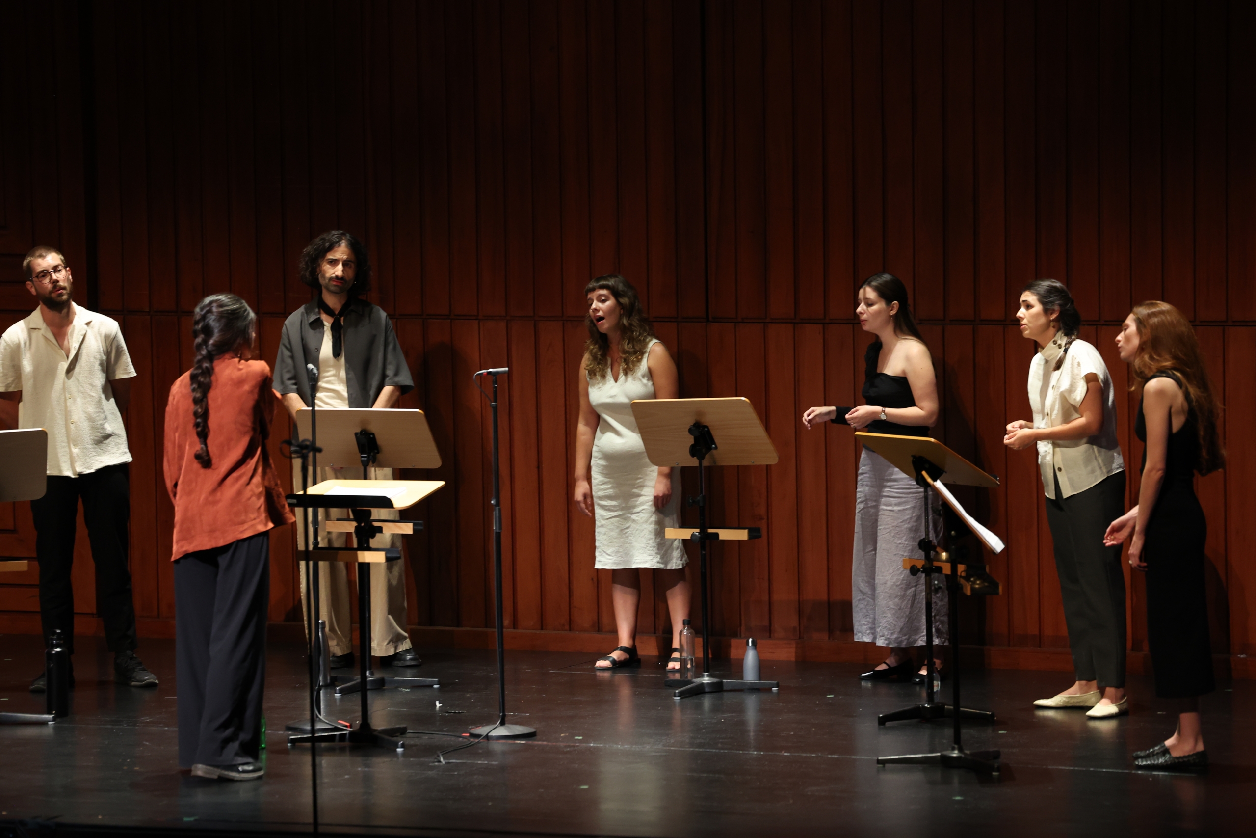 Na segunda parte do concerto ouvimos o grupo Leida, “um instrumento a oito vozes” como explica Mariana Dionísio, a responsável pela criação do projeto e pela composição das obras que foram hoje apresentadas em Lisboa. Criado em 2023, este grupo integra as vozes de Beatriz Nunes, Diogo Ferreira, Filipa Franco, Hugo Henriques, João Neves, Leonor Arnaut e Nazaré da Silva.